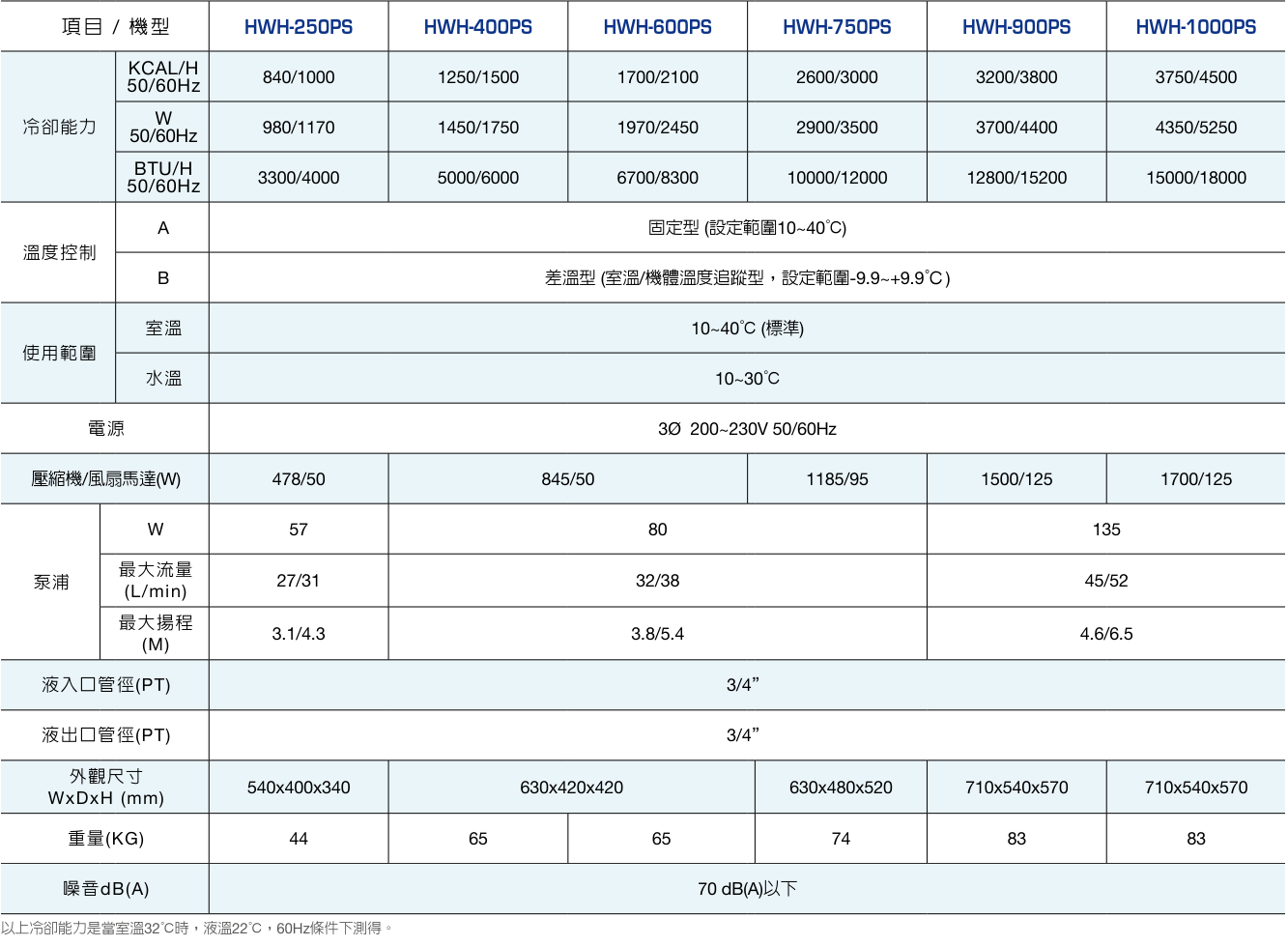 規(guī)格表 水冷卻機-臥式不含水箱