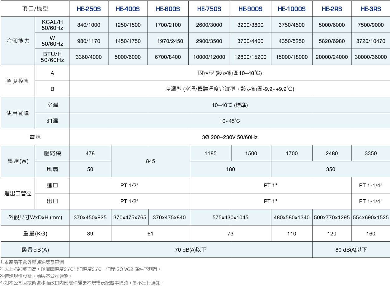 規(guī)格表